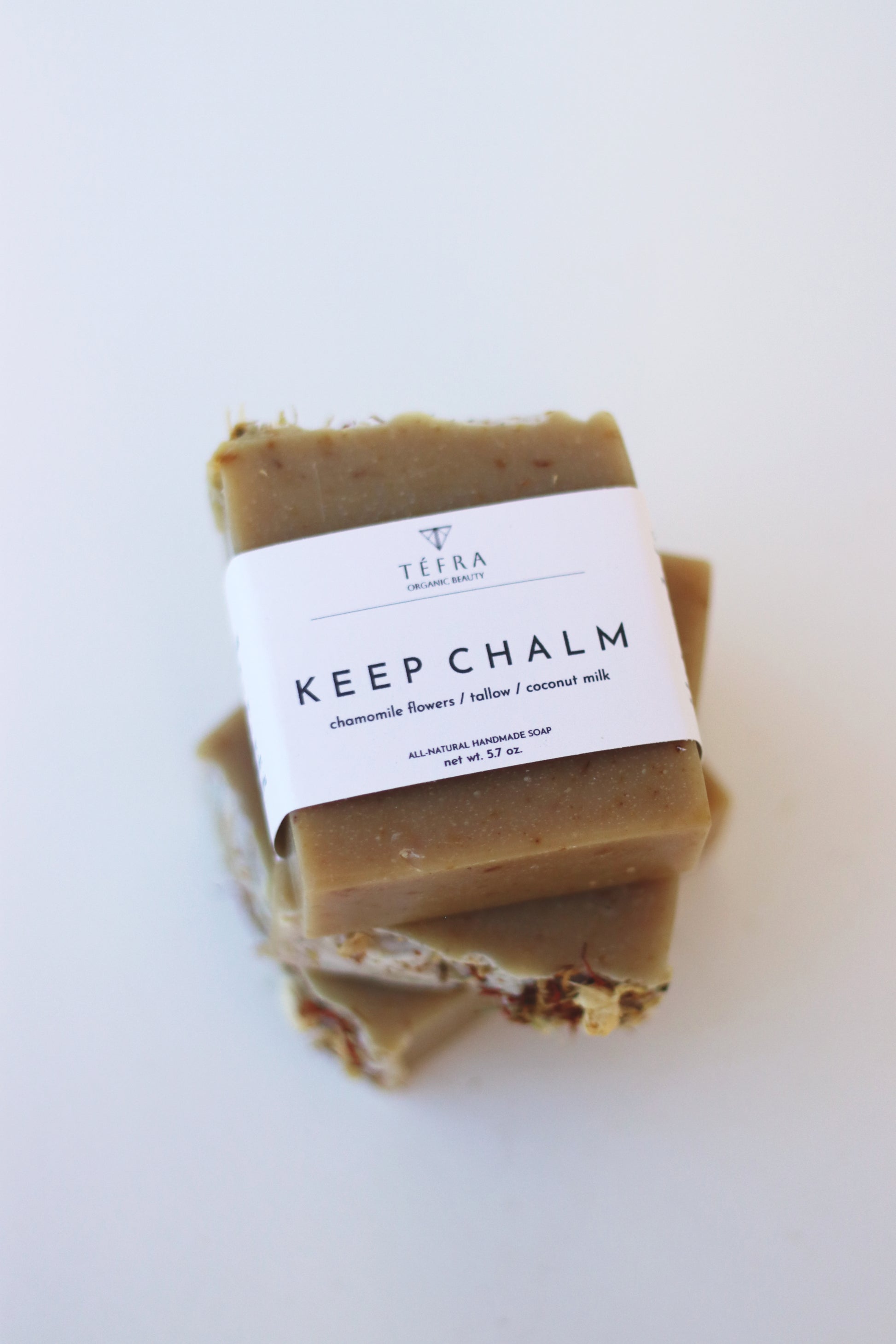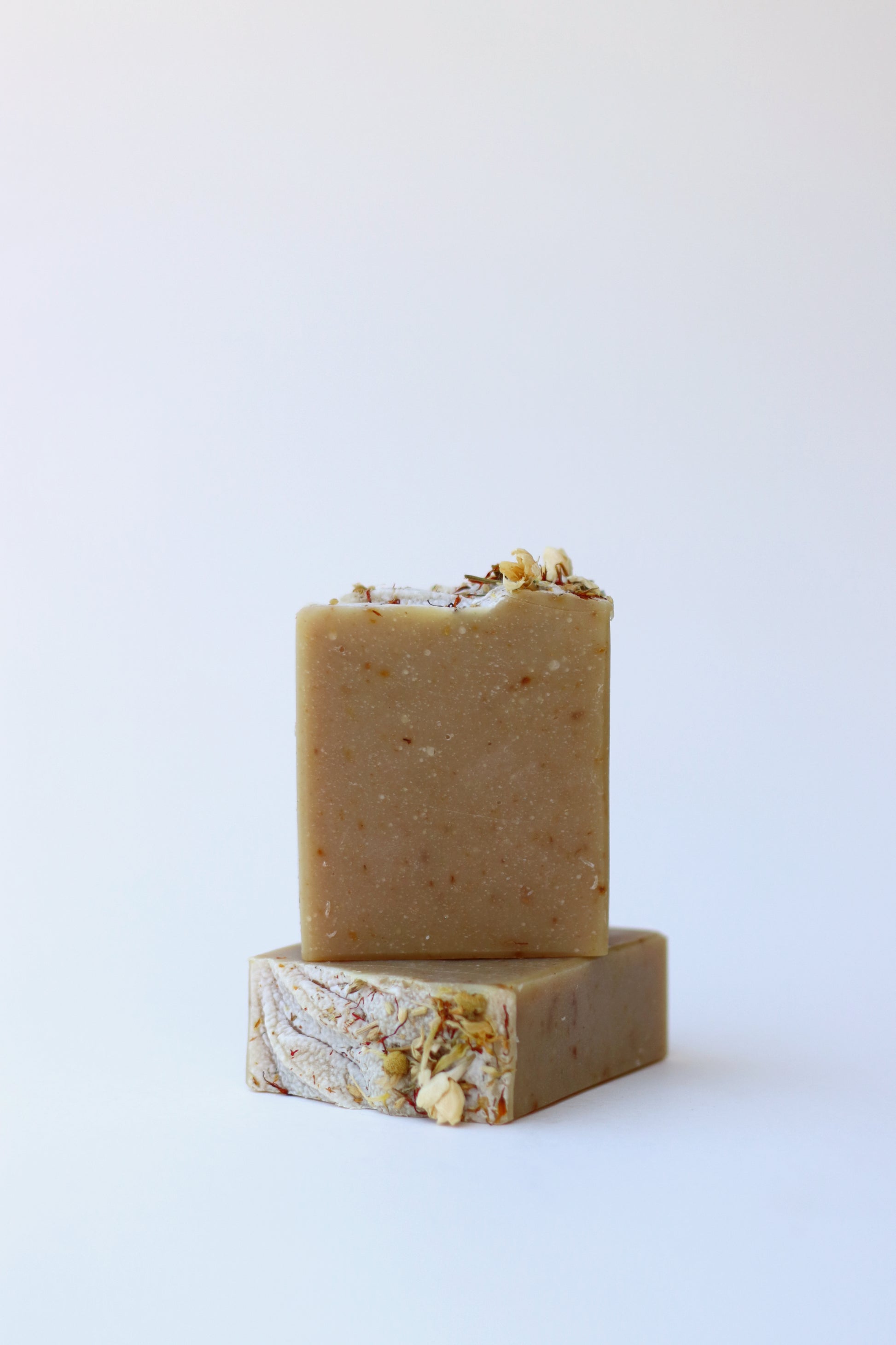 With finely ground organic chamomile flowers and calendula petals added right into the batter, Keep Chalm is wonderfully calming for all skin types, and especially for those with irritated or inflamed skin conditions, such as eczema, rosacea, or acne. Lightly scented with only pure essential oils that are soothing to the skin - creating a blend of mildly sweet, herbaceous, and floral tones - including hyssop, sage, helichrysum, and lavender. Gentle and moisturizing. Makes an excellent facial bar.
